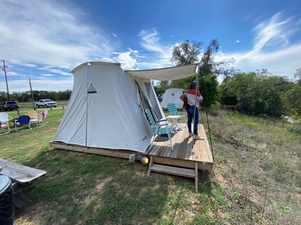 One of the newer additions to the Pecan Grove Store are the creekside camping tents. In fact, this is where we decided to stay. After all, it was close to beer and food so it was kind of a no-brainer. As an incredibly welcome added bonus, the weather decided to get downright perfect for this trip with highs in the mid seventies and lows in the sixties… perfect camping weather.