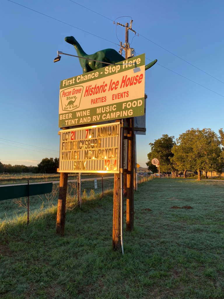 About 25 miles later, we hit our first stop, The Pecan Grove Store. Located just on the outskirts of Fredericksburg, this historic treasure welcomes any and all who pass by on a given day who seek a pit stop that features the coldest beer in Texas, some of the most delicious grub, and a friendly atmosphere that makes you feel right at home. You won’t meet a stranger here, I guarantee it.