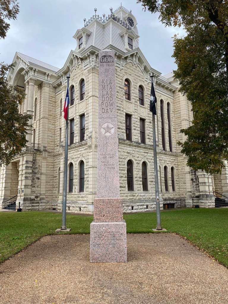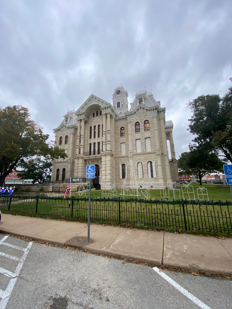 As I turned onto Waco Street, the main strip through downtown, I was greeted by one beautiful historic building after another. The main square is a picture perfect example of small town, USA, complete with antique shops, an old movie theater with that classic marquee straight from the 1950’s, and one of the most impressive county courthouses I’ve ever seen. I’ve long been a sucker for a Texas County Courthouse, and I’ve remained convinced that the Williamson County Courthouse, located in Georgetown, Texas, is the most beautiful of them all. Well, today I stand corrected. This courthouse takes first prize, hands down.