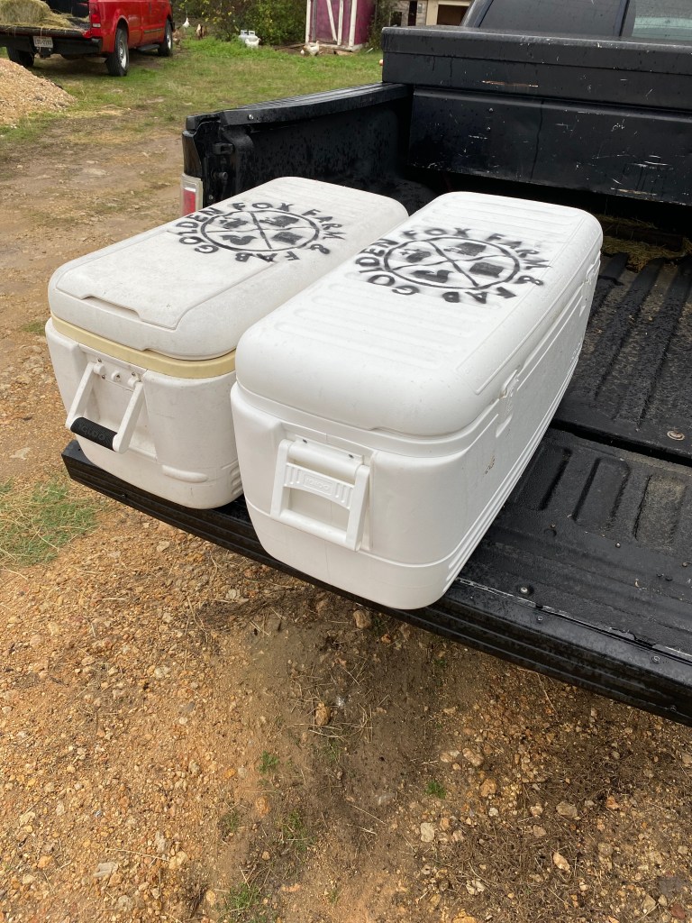 It was an early rise; 3:00am, to be exact. After the usual morning routine, it was time to load the birds for transport so I could be on the road by 5:00am. This is where things got weird. Somewhere in the planning process, I decided to take my daily driver, a short bed Ford pickup truck. After loading the large ice chests and other needed items, there was no room left in the bed for the birds. However, their transport crates fit perfectly in the back floorboard area due to the back seats being designed to flip all the way up and out of the way. Remember, this was all part of the plan. This is where I should also remind you that I have a perfectly good long bed farm truck that I could have have fit everything in the bed of, perfectly. But no, I refuse to include logic in my planning! With the birds loaded in the back seat, off we went.