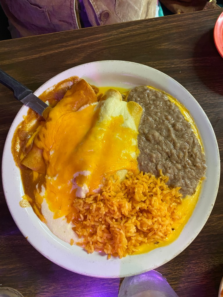 As we enjoyed each other’s company along with the yummy queso, a lady in the kitchen sang along to the Tejano music that was paying on the kitchen radio. She sang in a way that indicated she was loving what she was doing. The “whistle while you work” type of vibe was prevalent through each belted song. Our plates soon followed and the food was great. Now, Mexican food restaurants throughout Texas have considerable competition, and the market is quite saturated so, while this food might not have been the best of the best, it was damn fine and it felt as if we were in the house of someone’s sweet abuela somewhere in Old Mexico, and she’d just cooked a delicious meal, just for us.